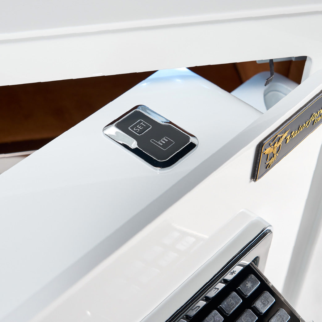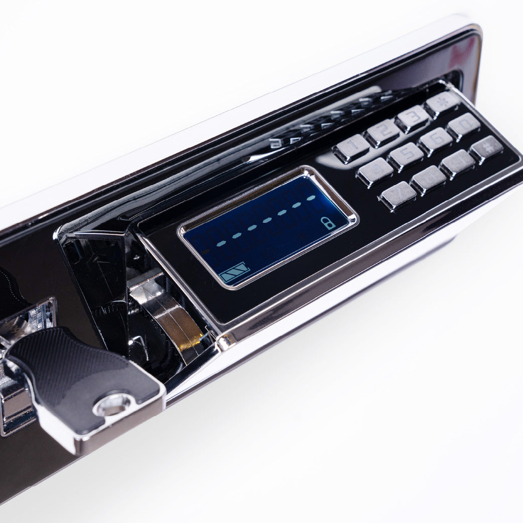 Your safe’s numeric keypad stays concealed behind a mirror panel, only revealed with a special key. Extra discreet, extra secure.